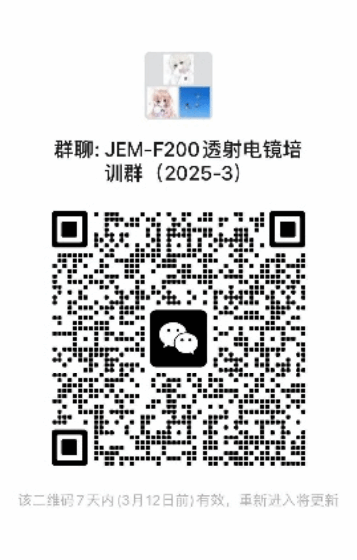 2.请用微信扫描“JEM-F200透射电镜培训群(2025-3)”二维码加入群聊,群昵称修改为姓名-学院名称-导师姓名;扫码如实填写“JEM-F200 培训信息收集表(2025-3)”。