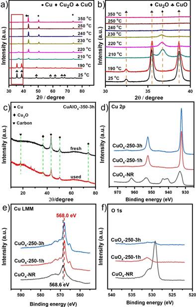 甲酰胺是工业上重要的中间体和溶剂,用CO2/H2催化n -甲酰化胺制甲酰胺是一种具有广泛应用价值的方法。然而,催化性能与催化剂结构之间的关系尚不明确。利用变温原位XRD及准原位变温XPS共同证实了活性催化剂中Cu2O和Cu位点共存,脂肪族伯胺与CO2/H2通过含有Cu2O/Cu界面位点的催化剂实现了n-甲酰化。氧化铝载体的引入有力地稳定了活性混合价Cu2O/Cu结构,催化剂可以连续使用6次而没有明显的活性损失,以高回收率合成了一系列结构多样的甲酰胺。原位XRD、准原位XPS联合揭示活性催化剂中Cu2O和Cu位点共存,揭示了甲酸甲酯可能是反应中间体的反应机理。
