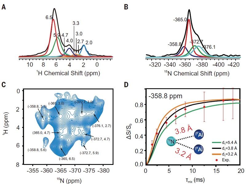 沸石分子筛中铝原子的取代位置会影响其催化活性、吸附物的几何形状以及形状和尺寸的选择性。准确地确定铝原子的位置一直是一个挑战。在研究铝原子位置时,固体核磁共振方法发挥了重要作用。通过分析铝物种的局部化学环境来提供有关铝原子位置信息。通过1H、29Si、27Al以及15NH3探针分子的固体核磁共振谱,推测了铝对邻近位点的复杂相互作用。这些研究表明,铝原子之间存在相互作用,影响分子吸附和催化反应的机制。